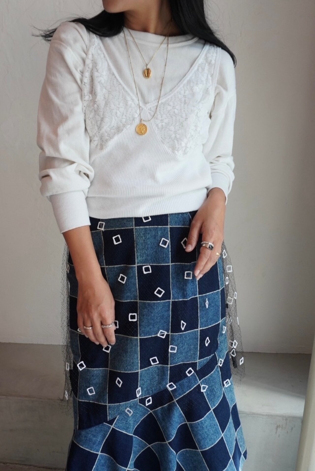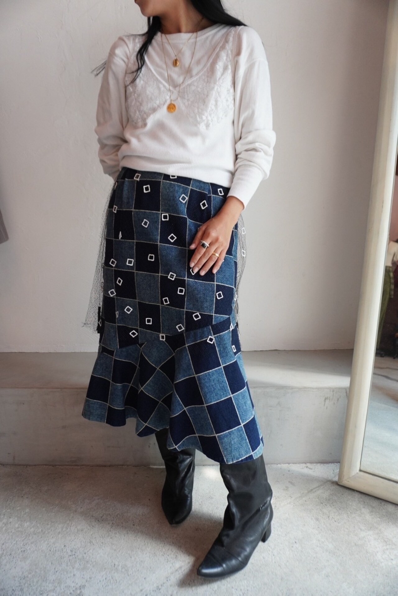 denim frill skirt