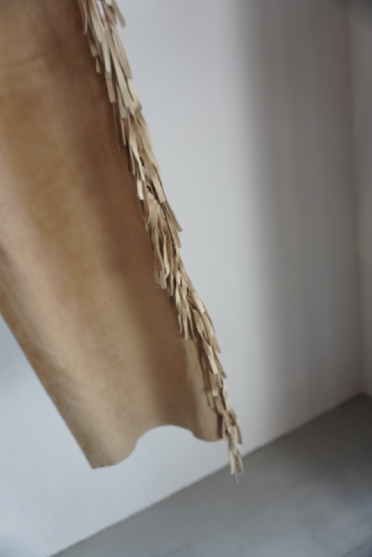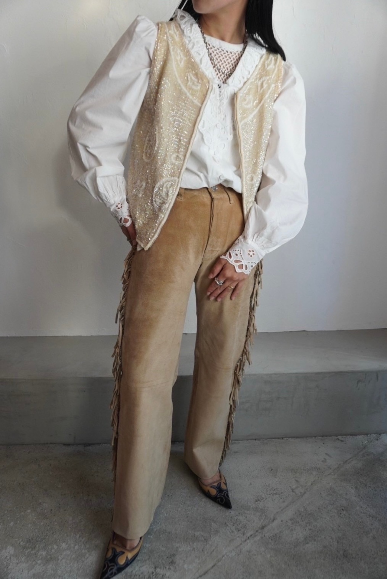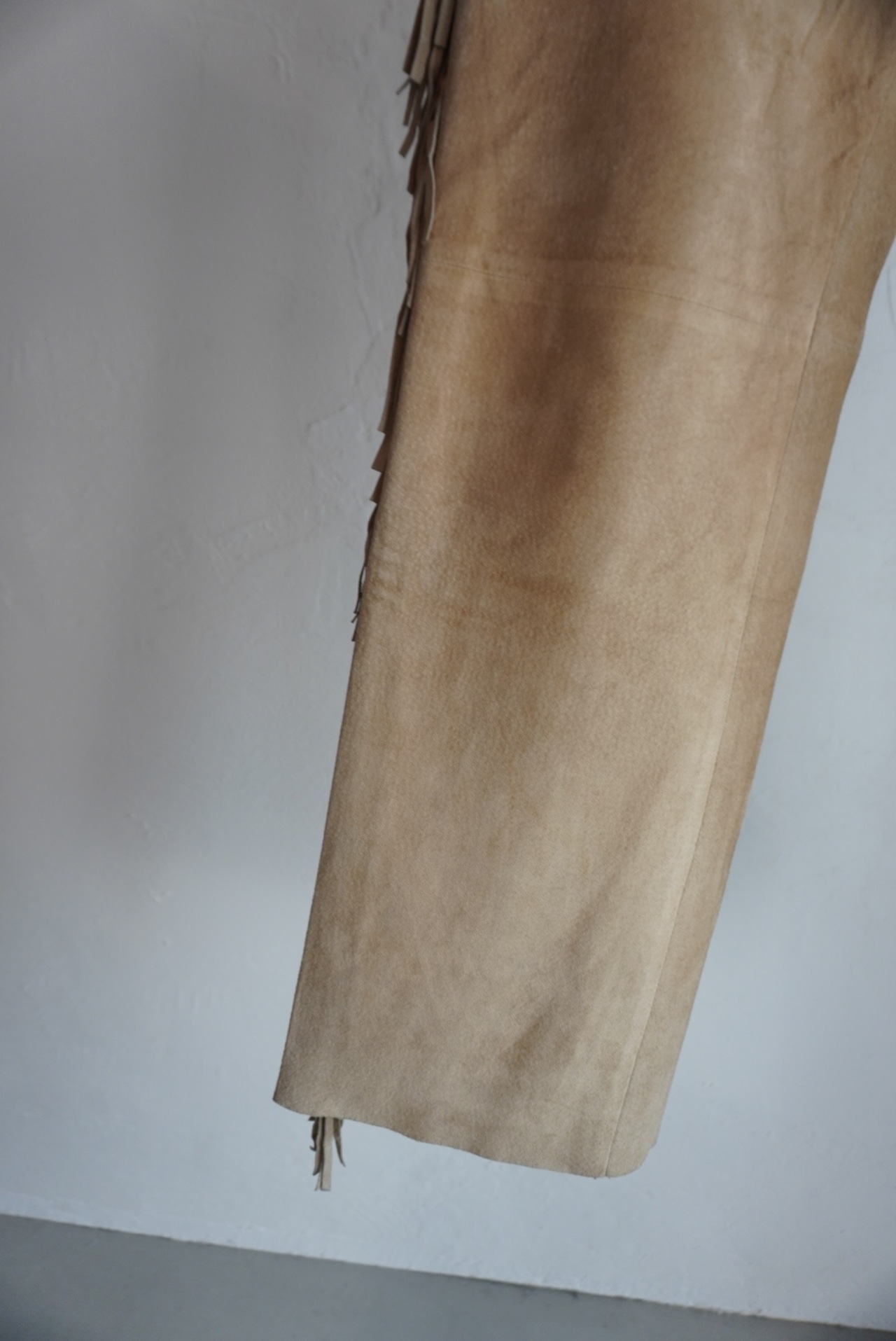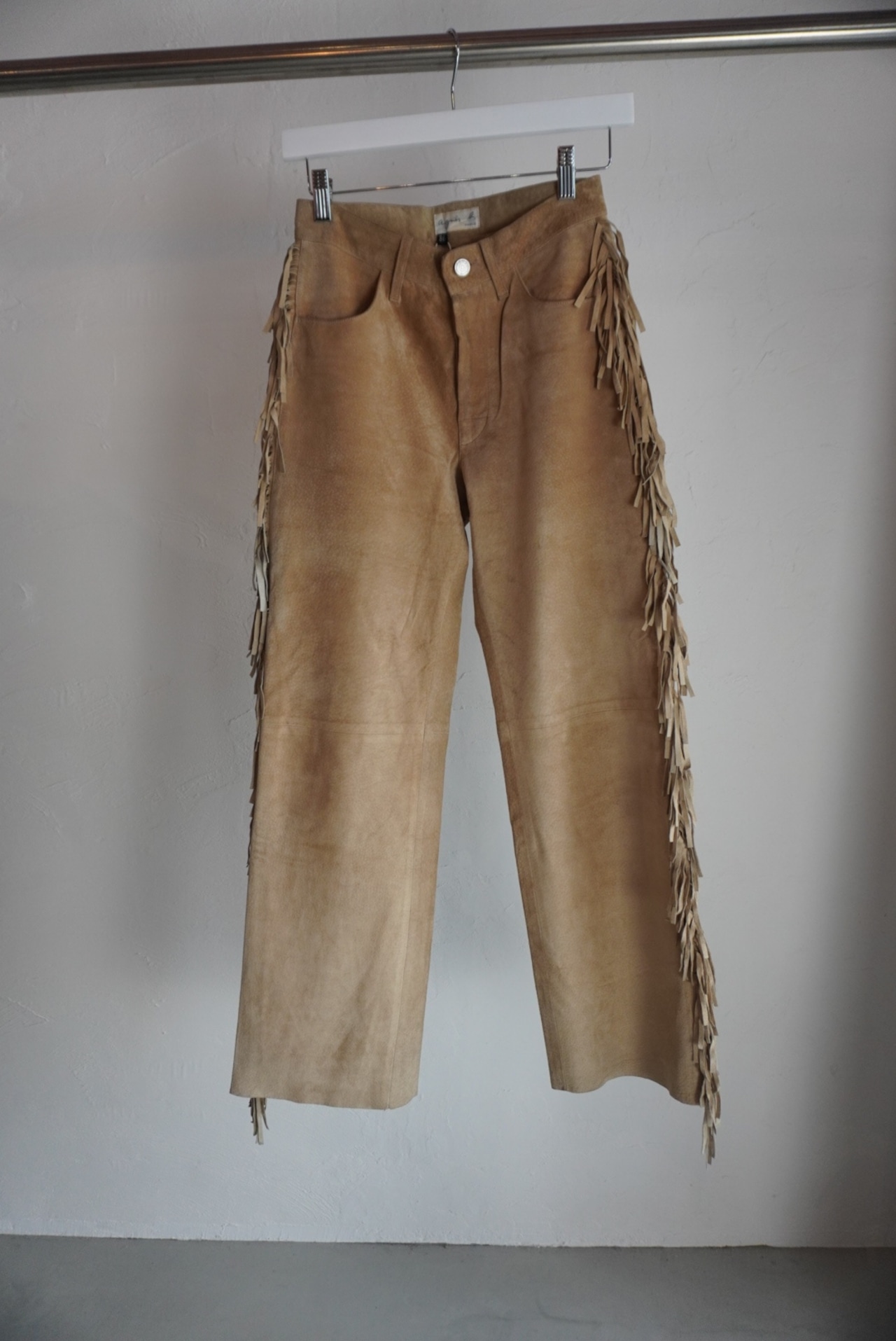 サイドにフリンジがついたデザイン性の高いスエードパンツ。