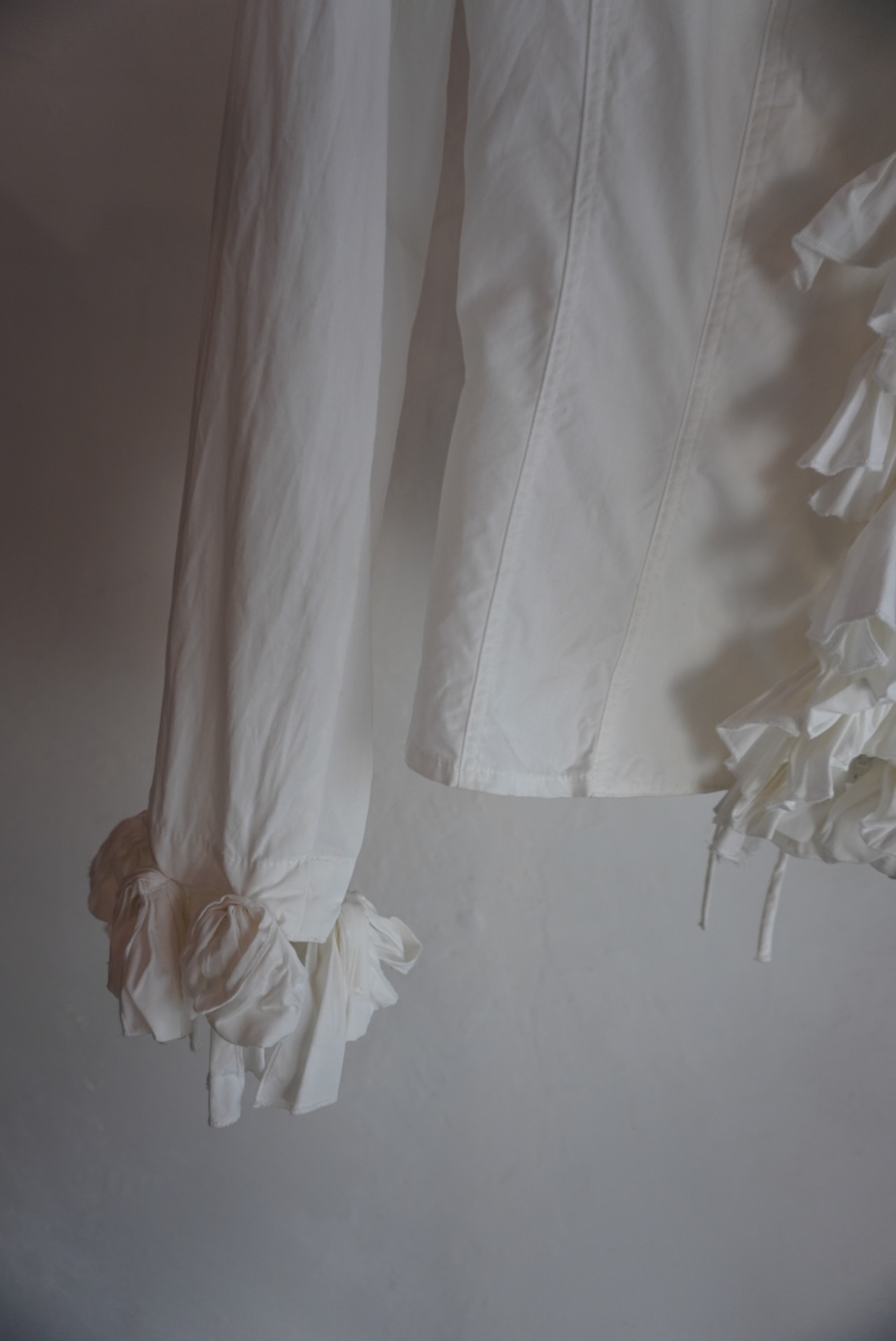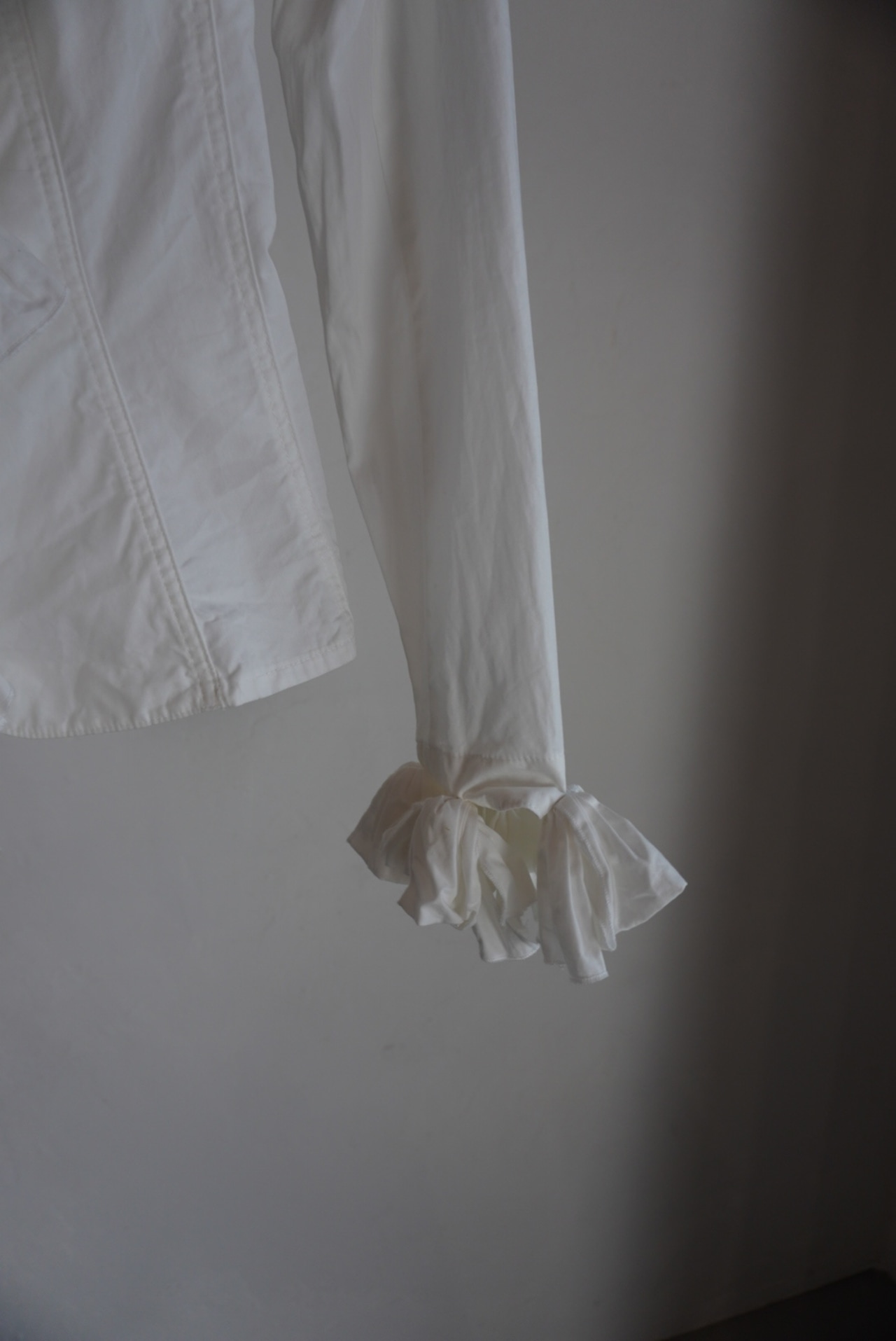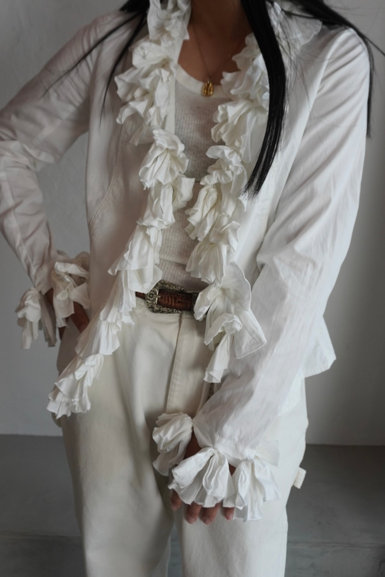 首元と裾に大判なフリルがついたデザイン性の高いジャケット。
