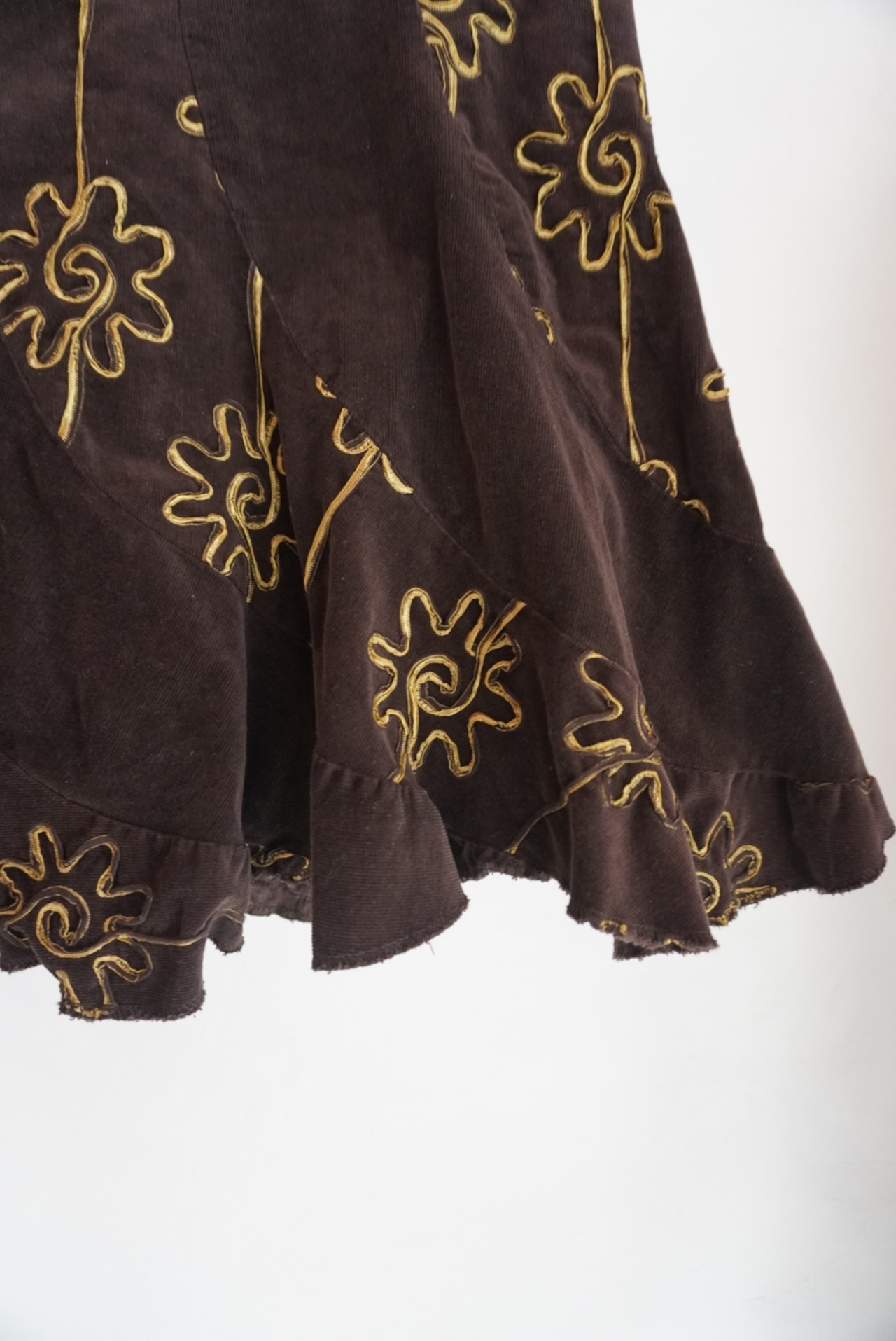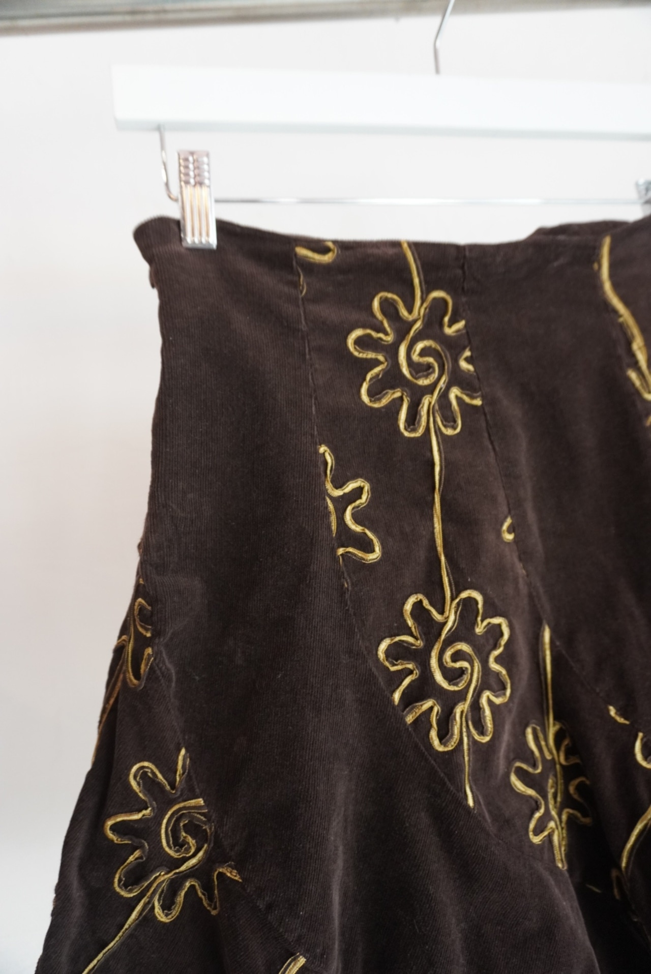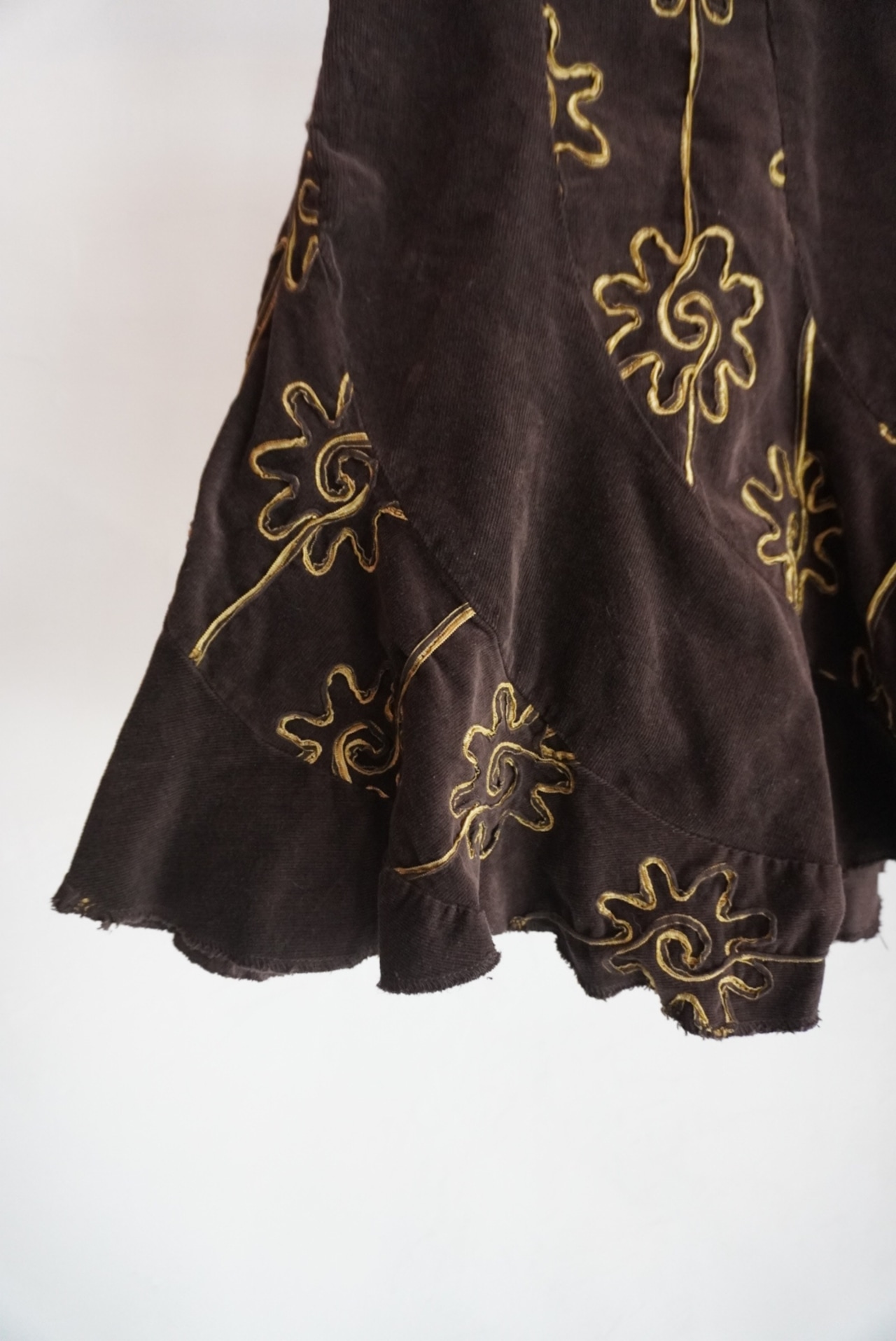 コーデュロイ✖︎ブラウンにフラワーの刺繍が可愛い!