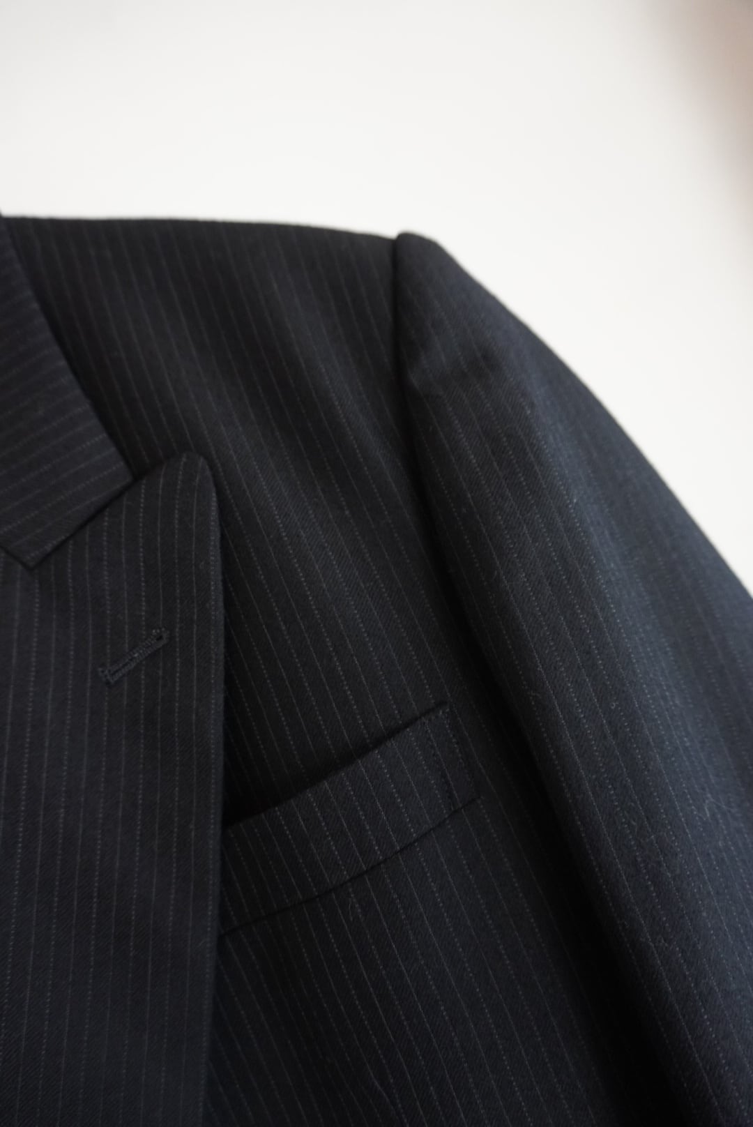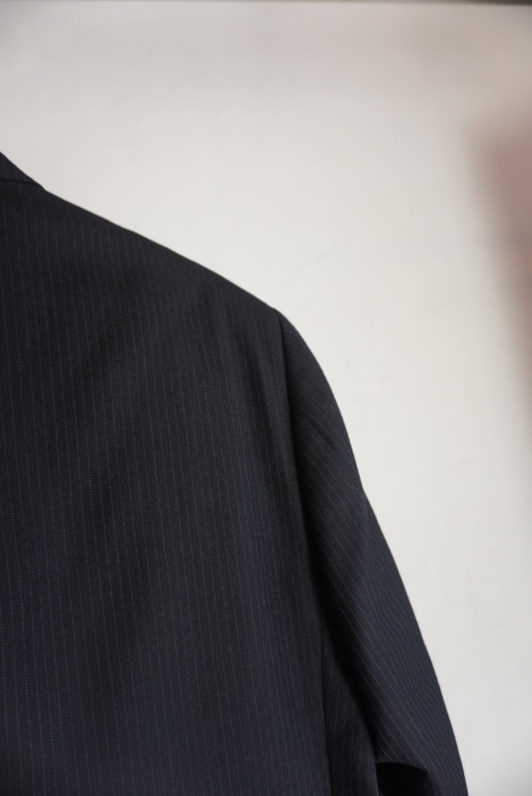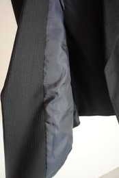 細かなストライプとネイビーのデザインが可愛いジャケット。