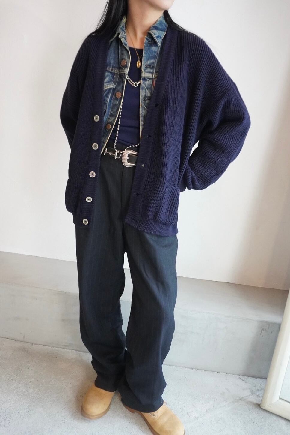 ネイビーのカラーで合わせやすく、どんなコーディネートにも取り入れやすい。