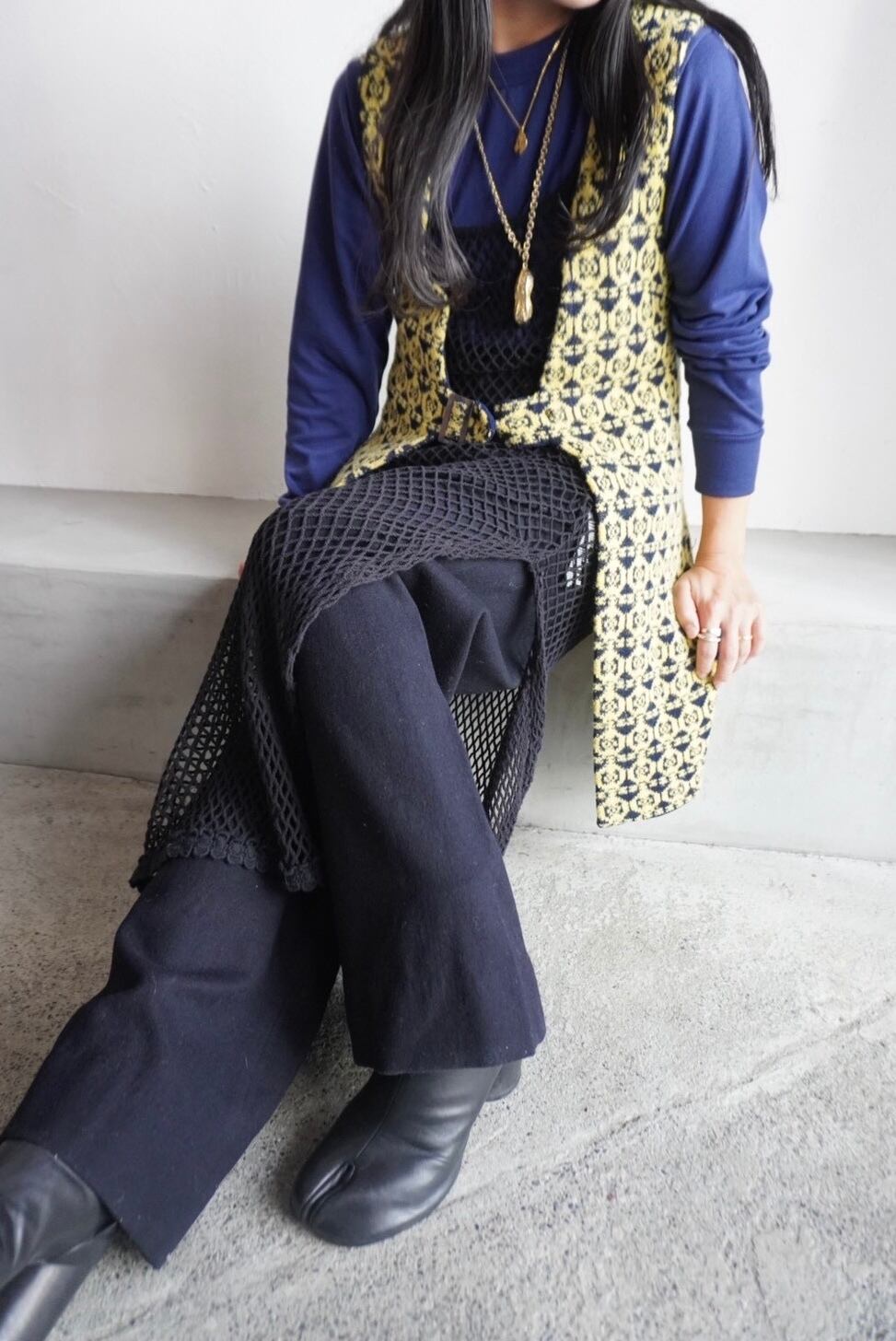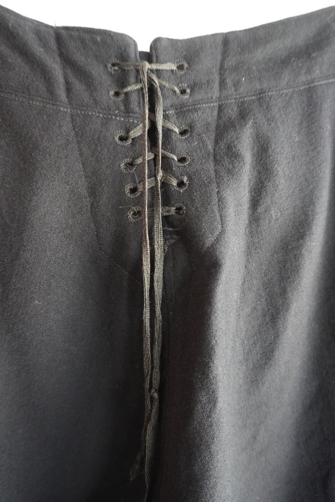 ウール混で温かく、背面に施されたレースでウエストの調整ができ、スッキリとした腰回りに見せてくれます。