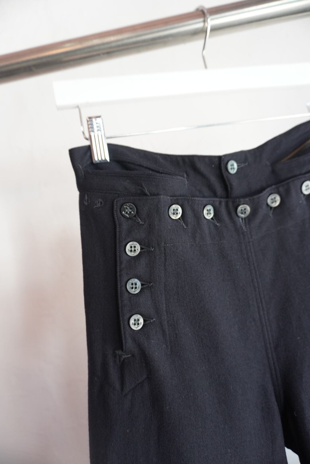 マリンパンツ自体が古く虫食いで穴だらけの物が多い中、すごく状態の良い物をみつけました。80年程前の物とは思えない状態です。