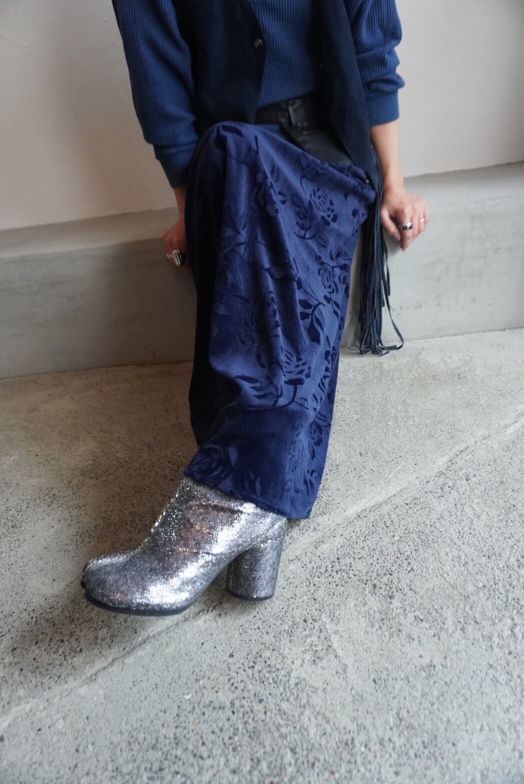 velours flower skirt