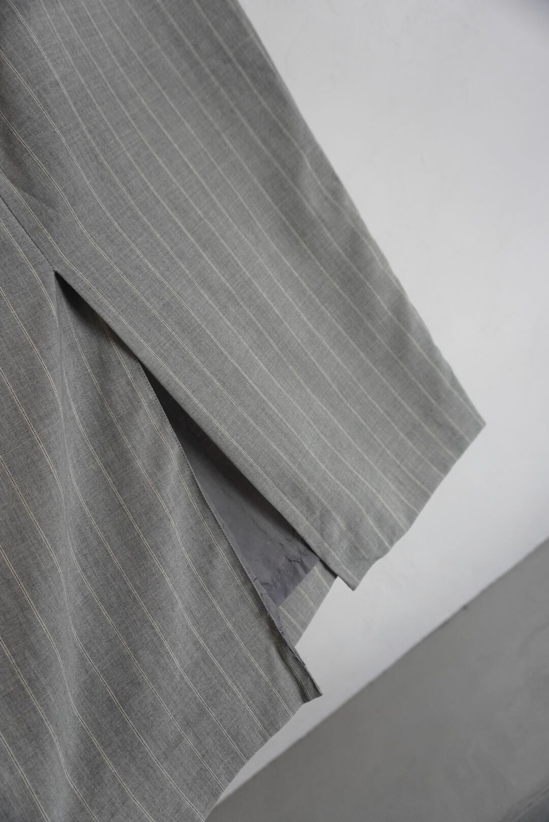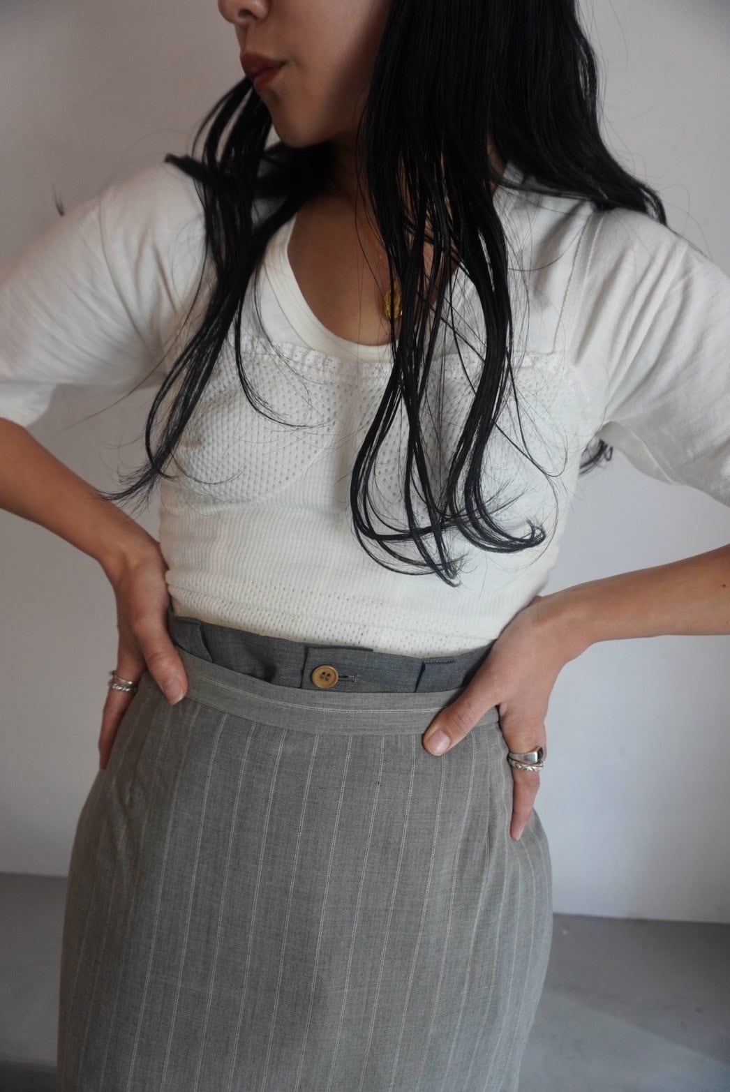 7部丈のストライプ柄のスカート。